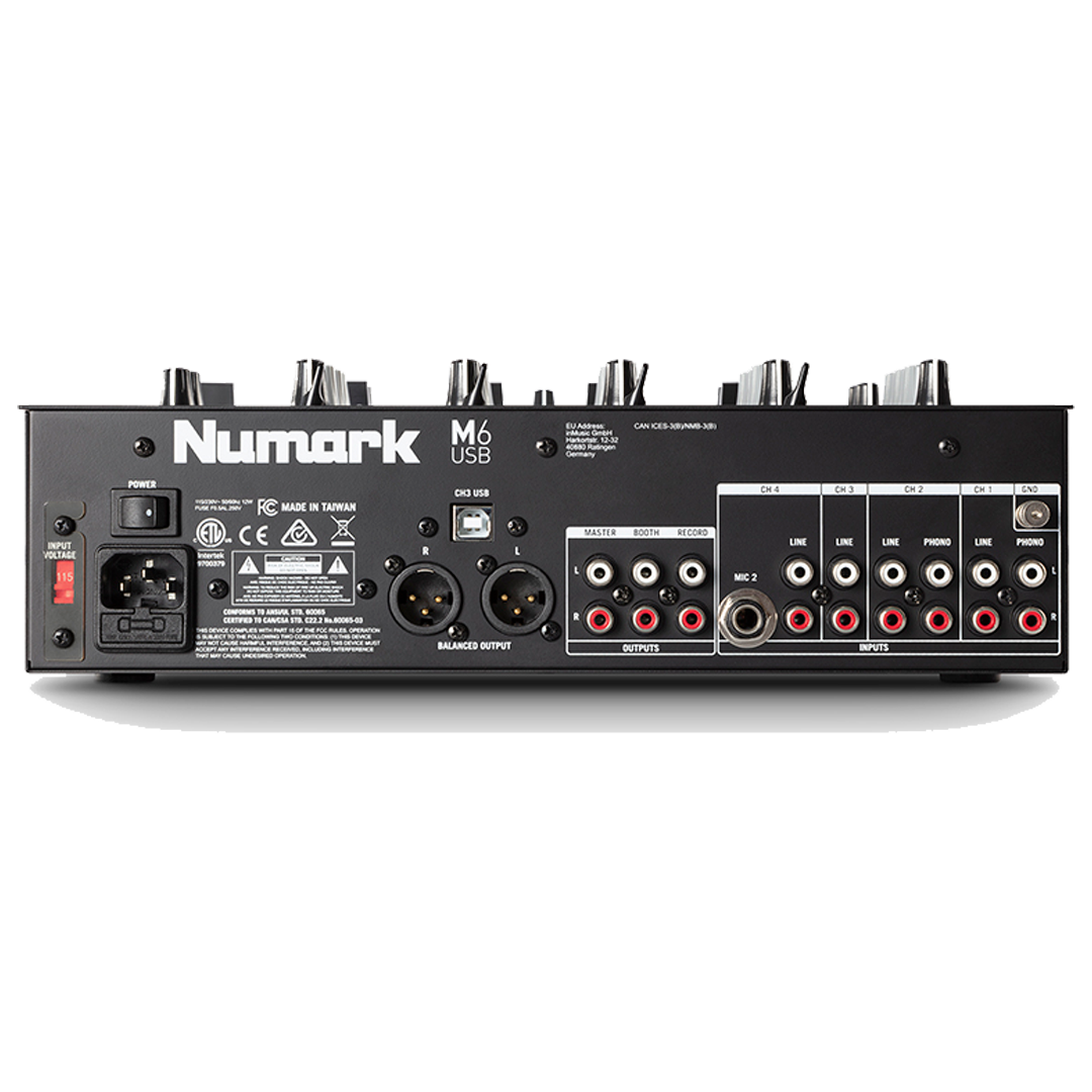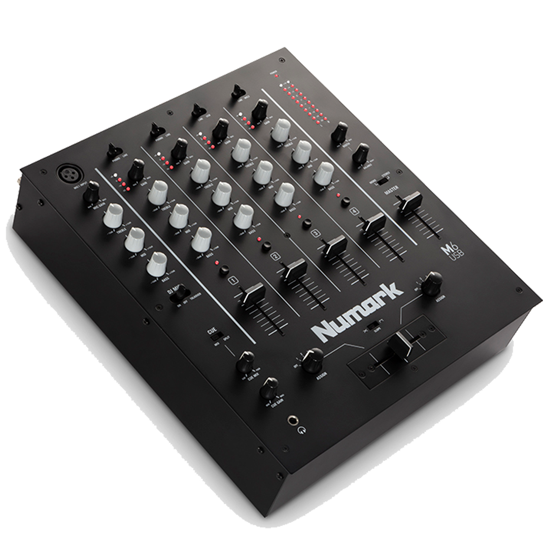 El M6 te permite convertirlo en un mezclador de cuatro canales. Este diseño de estilo club no solo es compatible con cualquier fuente de audio estándar, como tocadiscos y reproductores de CD, sino que también cuenta con conexión USB para ordenador. Al conectarlo a tu Mac o PC, la conexión plug-and-play te permite mezclar audio desde tu reproductor de música y grabar tus sesiones en prácticamente cualquier aplicación de grabación de audio.